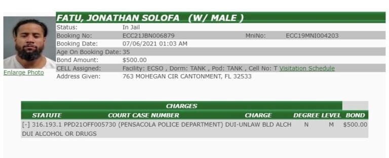 Después de que Jimmy Uso falló en sus pruebas de sobriedad de campo, la policía lo arrestó. Estaba muy por encima del límite legal para ser considerado intoxicado. Uso fue fichado por un delito menor de DUI y actualmente está tras las rejas al momento de escribir este artículo. El monto de su fianza está fijado en $ 500.