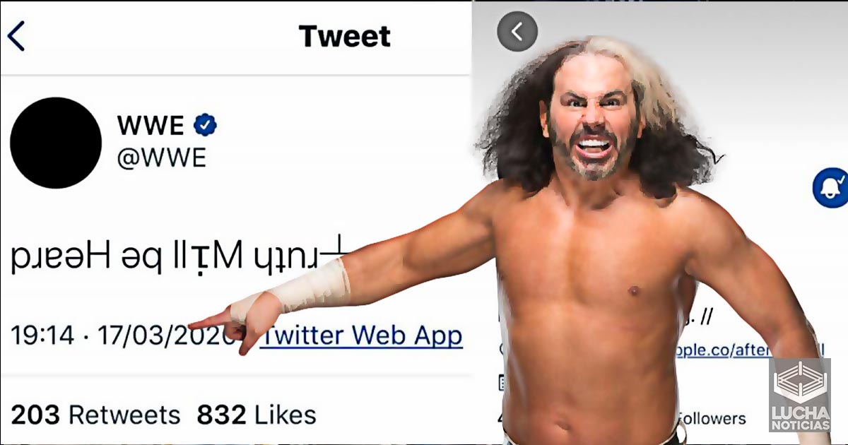 ¿Matt Hardy detrás de la actividad extraña en el twitter de WWE? La biografía del asa también se cambió a “Exponer. W a t c hi n g. //” mientras la imagen de perfil se volvía a un fondo negro. Como se esperaba, WWE eliminó el tweet y restauró su identificador a su estado anterior, lo que llevó a especular que la cuenta podría haber sido pirateada. https://twitter.com/365Wrestle/status/1239994869998850053?s=20 Sin embargo, ese puede no ser el caso, ya que WWE pudo haber comenzado un ángulo y en el centro de todo podría estar … ¿Matt Hardy? Hardy publicó el siguiente tweet que ha provocado el colapso del Universo WWE: https://twitter.com/MATTHARDYBRAND/status/1240046492498505728?s=20 La observación más llamativa del tweet eliminado de WWE es que las iniciales M y H se destacan claramente. ¿WWE nos ha trabajado a todos y ha vuelto a firmar a Matt Hardy? https://twitter.com/StaBwaaa/status/1240048607597821952?s=20 The Broken One y la WWE posiblemente hayan plantado las semillas de un regreso enfático a la compañía solo semanas después de que su contrato llegara a su fin. Se esperaba ampliamente que Matt Hardy se uniera a All Elite Wrestling y The Young Bucks que aparecían en su serie #FreeTheDelete parecía una confirmación de su inminente debut en AEW. ¿Fue todo una diversión? ¿La segunda venida de Matt Hardy será en la WWE?. Le aconsejamos que mantenga las notificaciones de Twitter de Matt Hardy abierto en una pestaña separada en todo momento para obtener otra pista sobre este misterio en desarrollo. Síguenos en redes sociales, Facebook, Youtube, Twitter e Instagram, para la mejor información de WWE en español. Lucha Noticias la mejor información en Lucha Libre. ]]>